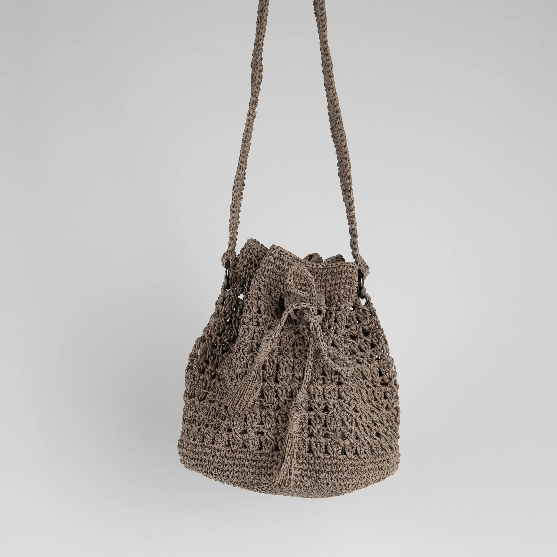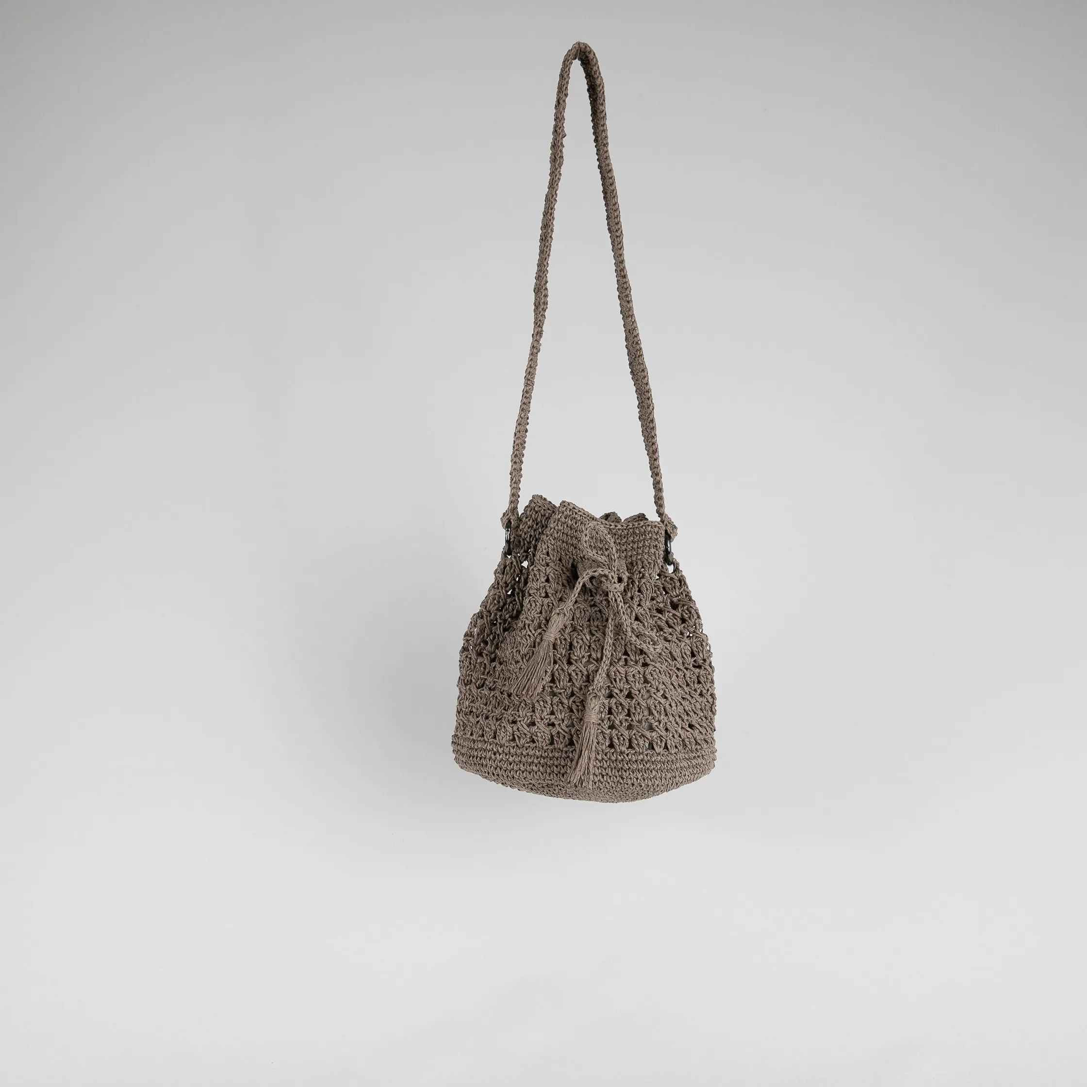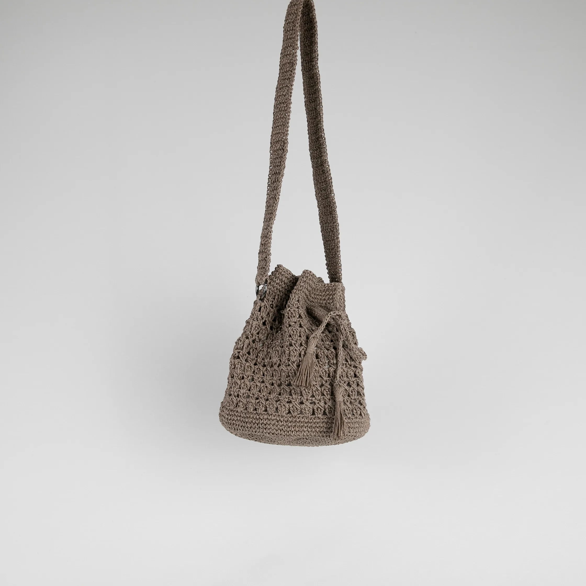 Bodrum Boutique El Yapımı Makrome Kova Çanta, Bodrum’un sıcak esintileri ve ev hanımlarının ince el işçiliği ile hayat buluyor. Bu çanta, kaliteli kahverengi makrome iplikler ve dayanıklı yapısı ile üretilmiş olup, her bir örgü detayında sevgi ve özen barındırır.